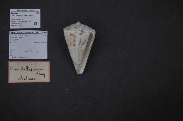 Keywords: Naturalis Biodiversity Center - ZMA.MOLL.54863 - Conus malacanus Hwass, 1792 - Conidae - Mollusc shell.jpeg artwork Dimensions artwork Document type Conidae Conus Individual count Infraspecific epithet Infraspecific rank Institution Naturalis Kind of unit artwork Kind of unit specimen shell Life stage Malaysia Strait of Malacca lat 2 5 lon 112 5 Medium artwork Nomenclatural code Source institute Zoölogisch Museum Amsterdam Scale the width of the text on the species/QR-code label is 38 mm Occurrence ID page Other fields Other versions artwork Permission license Naturalis donation CC-0 Mollusca Publication location Scientific name Conus malacanus Hwass 1792 Scientific name authorship Hwass 1792 Source url http //bioportal naturalis nl Specific epithet malacanus State or province Strait of Malacca Subject keywords artwork Subject keywords publication Title artwork Title publication Type status Uploaded with GWToolset Naturalis_Biodiversity_Center_-_ZMA MOLL 54863_-_Conus_malacanus_Hwass _1792_-_Conidae_-_Mollusc_shell http //medialib naturalis nl/file/id/ZMA MOLL 54863/format/large Molluscs at Naturalis from the Zoölogisch Museum Amsterdam Media donated by Naturalis Biodiversity Center Conus malacanus Conus |