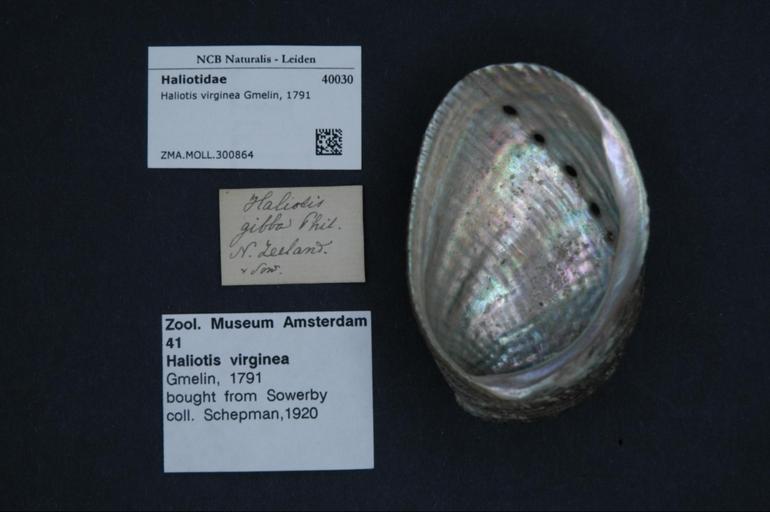 | Keywords: Naturalis Biodiversity Center - ZMA.MOLL.300864 - Haliotis virginea Gmelin, 1791 - Haliotidae - Mollusc shell.jpeg artwork Dimensions artwork Document type Haliotidae Haliotis Individual count Infraspecific epithet Infraspecific rank Institution Naturalis Kind of unit artwork Kind of unit specimen shell Life stage Medium artwork Nomenclatural code Scale the width of the text on the species/QR-code label is 38 mm Occurrence ID page Other fields Other versions artwork Permission license Naturalis donation CC-0 Mollusca Publication location Scientific name Haliotis virginea Gmelin 1791 Scientific name authorship Gmelin 1791 Source url http //bioportal naturalis nl Specific epithet virginea State or province Subject keywords artwork Subject keywords publication Title artwork Title publication Type status Uploaded with GWToolset Naturalis_Biodiversity_Center_-_ZMA MOLL 300864_-_Haliotis_virginea_Gmelin _1791_-_Haliotidae_-_Mollusc_shell http //medialib naturalis nl/file/id/ZMA MOLL 300864/format/large Media donated by Naturalis Biodiversity Center Molluscs at Naturalis from the Zoölogisch Museum Amsterdam Haliotis virginea Haliotis |