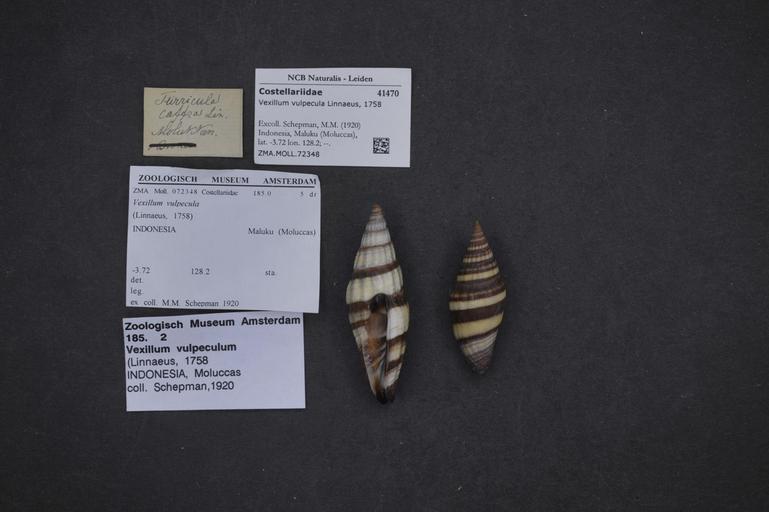Keywords: Naturalis Biodiversity Center - ZMA.MOLL.72348 - Vexillum vulpecula (Linnaeus, 1758) - Costellariidae - Mollusc shell.jpeg artwork Dimensions artwork Document type Costellariidae Vexillum Individual count Infraspecific epithet Infraspecific rank Institution Naturalis Kind of unit artwork Kind of unit specimen shell Life stage Indonesia Maluku Moluccas lat -3 72 lon 128 2 Medium artwork Nomenclatural code Collection remarks Moll Source institute Zoölogisch Museum Amsterdam Scale the width of the text on the species/QR-code label is 38 mm Occurrence ID page Neogastropoda Other fields Other versions artwork Permission license Naturalis donation CC-0 Mollusca Publication location Scientific name Vexillum vulpecula Linnaeus 1758 Scientific name authorship Linnaeus 1758 Source url http //bioportal naturalis nl Specific epithet vulpecula State or province Maluku Moluccas Subject keywords artwork Subject keywords publication Title artwork Title publication Type status Uploaded with GWToolset Naturalis_Biodiversity_Center_-_ZMA MOLL 72348_-_Vexillum_vulpecula_ Linnaeus _1758 _-_Costellariidae_-_Mollusc_shell http //medialib naturalis nl/file/id/ZMA MOLL 72348/format/large Molluscs at Naturalis from the Zoölogisch Museum Amsterdam Media donated by Naturalis Biodiversity Center Vexillum vulpecula Vexillum |