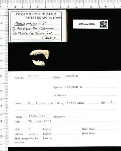 Keywords: Naturalis Biodiversity Center - ZMA.MAM.22359.a lat - Mustela erminea Linnaeus - skull.jpeg artwork Dimensions artwork Document type Mustela Individual count 1 Infraspecific epithet Infraspecific rank Institution Naturalis Kind of unit artwork Kind of unit specimen skull Life stage Netherlands Noord Holland Waterland Ransdorper Die Medium artwork Nomenclatural code Occurrence ID page Other fields Other versions artwork Permission license Naturalis donation CC-0 Publication location Scientific name Mustela erminea Linnaeus Scientific name authorship Linnaeus male Source url http //bioportal naturalis nl Specific epithet erminea State or province Noord Holland Subject keywords artwork Subject keywords publication Title artwork Title publication Type status Uploaded with GWToolset Naturalis_Biodiversity_Center_-_ZMA MAM 22359 a_lat_-_Mustela_erminea_Linnaeus_-_skull http //medialib naturalis nl/file/id/ZMA MAM 22359 a_lat/format/large Mammals at Naturalis from the Zoölogisch Museum Amsterdam Media donated by Naturalis Biodiversity Center Mustela erminea Mustela |