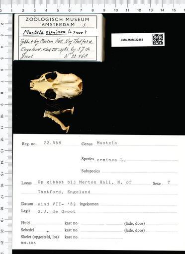 Keywords: Naturalis Biodiversity Center - ZMA.MAM.22468 pal - Mustela erminea Linnaeus - skull.jpeg artwork Dimensions artwork Document type Mustela Individual count 1 Infraspecific epithet Infraspecific rank Institution Naturalis Kind of unit artwork Kind of unit specimen skull Life stage UNITED KINGDOM Thetford Merton Hall Medium artwork Nomenclatural code Occurrence ID page Other fields Other versions artwork Permission license Naturalis donation CC-0 Publication location Scientific name Mustela erminea Linnaeus Scientific name authorship Linnaeus unknown Source url http //bioportal naturalis nl Specific epithet erminea State or province Subject keywords artwork Subject keywords publication Title artwork Title publication Type status Uploaded with GWToolset Naturalis_Biodiversity_Center_-_ZMA MAM 22468_pal_-_Mustela_erminea_Linnaeus_-_skull http //medialib naturalis nl/file/id/ZMA MAM 22468_pal/format/large Mammals at Naturalis from the Zoölogisch Museum Amsterdam Media donated by Naturalis Biodiversity Center Mustela erminea Mustela |