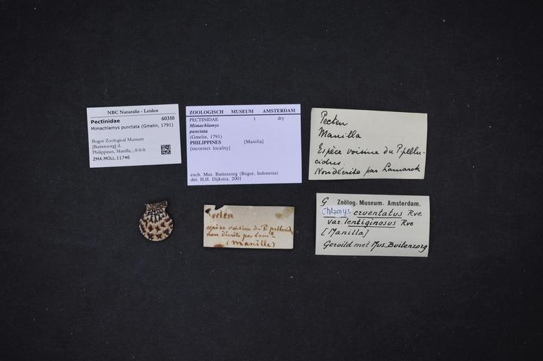 | Keywords: Naturalis Biodiversity Center - ZMA.MOLL.11746 - Mimachlamys punctata (Gmelin, 1791) - Pectinidae - Mollusc shell.jpeg artwork Dimensions artwork Document type Pectinidae subfamily Chlamydinae Mimachlamys Dijkstra H H Individual count Infraspecific epithet Infraspecific rank Institution Naturalis Kind of unit artwork Kind of unit specimen shell Life stage Philippines Manilla Medium artwork Nomenclatural code Collection remarks Moll Scale the width of the text on the species/QR-code label is 38 mm Occurrence ID page Pectinoida Other fields Other versions artwork Permission license Naturalis donation CC-0 Mollusca Publication location Scientific name Mimachlamys punctata Gmelin 1791 Scientific name authorship Gmelin 1791 Source url http //bioportal naturalis nl Specific epithet punctata State or province Subject keywords artwork Subject keywords publication Title artwork Title publication Type status Uploaded with GWToolset Naturalis_Biodiversity_Center_-_ZMA MOLL 11746_-_Mimachlamys_punctata_ Gmelin _1791 _-_Pectinidae_-_Mollusc_shell http //medialib naturalis nl/file/id/ZMA MOLL 11746/format/large Media donated by Naturalis Biodiversity Center Molluscs at Naturalis from the Zoölogisch Museum Amsterdam Mimachlamys punctata |