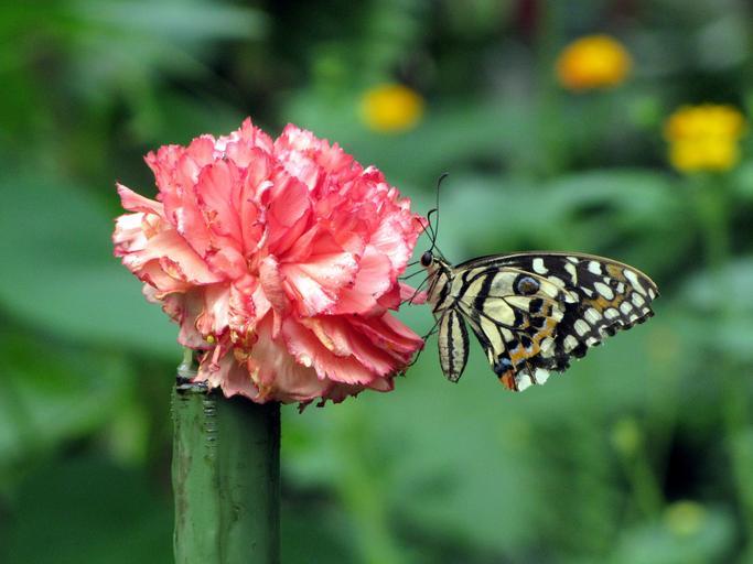 Keywords: nature flower carnation butterfly red white butterfly farm beautiful