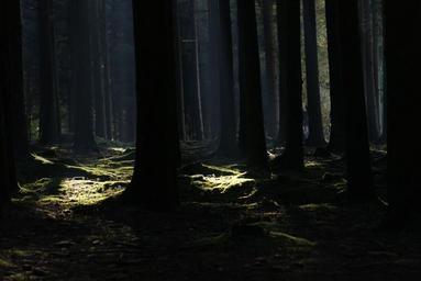 Keywords: nature forest trees landscape rest deciduous forest idyll silent light mood strains romantic atmospheric weird silhouette shadow