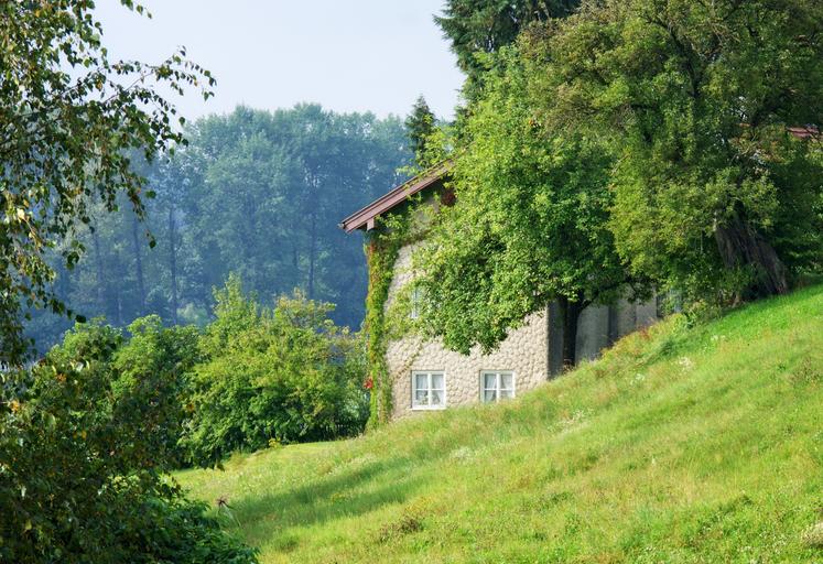 Keywords: nature home green trees landscape building old house ingrowing wild romantic