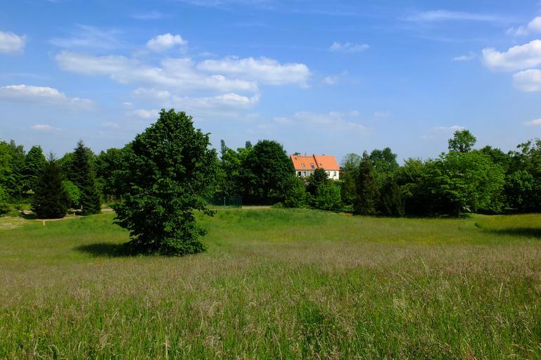 Keywords: nature landscape home cottage in the country haus am park park trees blue sky idyllic idyll free area nice weather outdoors in the green