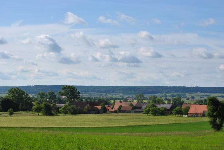 Keywords: nature landscape panorama sky distant view clouds germany swiss francs franconian heights village valley fields reported