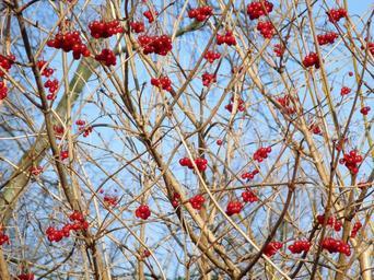Keywords: nature tree bush aesthetic berries red bird food sky blue january