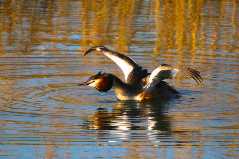 Keywords: nature water bird great crested grebe wing stretch