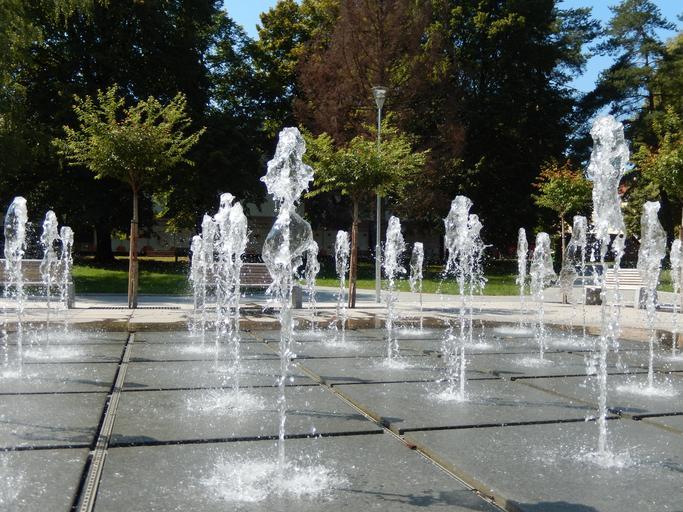 Keywords: nature water wet spout fountain parking summer sunny day trees