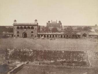 | Keywords: Naubat Khana Red Fort 1857.jpg This is a view looking west across the Red Fort from the Diwan-i-Am towards the Naqqar Khana also known as the Hathiyan Pol or Elephant Gate and in the distance the Lahore Gate The Red Fort was built by the Mughal Emperor Shah Jahan r 1628-58 between 1639 and 1648 The Naqqar Khanna is the inner public gate of the palace at the Red Fort The large red sandstone pavilion stands at the eastern end of an open space which leads into the Diwan-i-Am the Emperor's Hall of public audience Part of a portfolio of photographs taken in 1858 by Major Robert Christopher Tytler and his wife Harriet in the aftermath of the Uprising of 1857 British Library image http //www bl uk/onlinegallery/onlineex/apac/photocoll/w/019pho000000053u00017000 html 1858 Tytler Robert and Harriet PD-old-100 Naubat Khana Red Fort Historical images of the Red Fort 1858 in India |