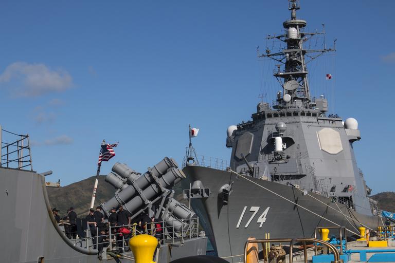 | Keywords: Naval Base Guam hosts US-Japanese ships for Multi-sail 2016 160304-N-OG363-029.jpg en APRA HARBOR Guam March 4 2016 The Japanese destroyer JS Kirishima DD-174 sits at Tango Wharf alongside the U S guided missile cruiser USS Chancellorsville CG-62 in Apra Harbor U S Naval Base Guam for a short in-port period prior to the bilateral exercise Multi-Sail 2016 MS-16 Ten total naval surface combatants assigned to the U S and Japanese navies arrived in-port to Apra Harbor increasing the total number of visiting and home-ported vessels at the base to 20 and marked the largest contingent of vessels in Apra Harbor in more than 30 years Released/Jeff Landis Major USMC Ret Director of Public Affairs/Communications Naval Base Guam <br>Unit U S Naval Base Guam 2016-03-04 Jeffrey Landis https //www dvidshub net/image/2465669/naval-base-guam-hosts-us-japanese-ships-multi-sail-2016 160304-N-OG363-029 2016-03-16 03 21 APRA HARBOR GU PD-USGov-Military-Navy Multi-Sail 2016 Images from DoD uploaded by FĂŚ |