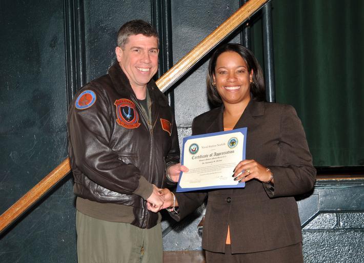 Keywords: Naval Station Norfolk's observance of Woman's History Month 130322-N-XX999-009.jpg en Capt David A Culler Jr commanding officer of Naval Station NAVSTA Norfolk presents Dr Kanama Bivins Commander Navy Region Mid-Atlantic Regional Comptroller with a certificate of appreciation for speaking at the Women's History Month ceremony Mar 22 This year's Women's History Month theme is women inspiring innovation through imagination Celebrating Women in Science Technology Engineering and Mathematics U S Navy photo by Boatswain's Mate 2nd Class Marisa Almada 2013-03-22 Petty Officer 2nd Class Marisa Almada https //www dvidshub net/image/892683 130322-N-XX999-009 2013-03-22 14 15 NORFOLK VA US PD-USGov-Military-Navy Naval Station Norfolk Women's History Month Images from DoD uploaded by Fæ |