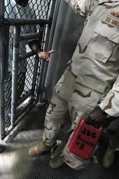 Keywords: Navy barber meets with a detainee DVIDS367050.jpg en The Joint Detention Group barber a Navy Ship ™s Serviceman speaks to a detainee about trimming his beard in Camp VI Feb 10 The barber is attached to the Navy Expeditionary Guard Battalion which provides a portion of the guard force inside the detention facilities Traditionally in the Navy Ship ™s Serviceman manages the ship ™s barber shop laundry dry cleaning and tailor departments 2011-02-10 Petty Officer 1st Class David P Coleman https //www dvidshub net/image/367050 110210-N-+++++-158 2011-02-14 12 20 GUANTANAMO BAY CU PD-USGov-Military-Navy Guantanamo Bay Images from DoD uploaded by Fæ |
