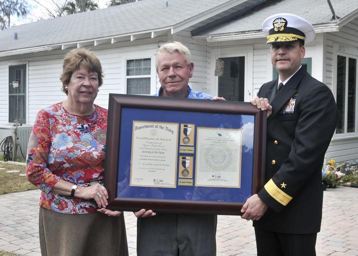 Keywords: Navy Distinguished Public Service Medal Awardees Branham.jpg en Rear Adm John C Scorby Jr Commander Navy Region Southeast presents the Department of the Navy Superior Public Service Award to Dr Joe Branham and his wife Margaret at their home near Bugg Spring Scorby presented the award to the Branhams for supporting the Navy's Tactical Towed Array Calibration Facility at Bugg Spring for the last 60 years 2012-01-26 15 06 00 120126-N-UA460-052 Navy http //www navy mil/local/nrse/images/hi-res/120126-N-UA460-052 jpg US Navy Mass Communication Specialist 2nd Class Greg Johnson other versions PD-USGov-Military-Navy Custom license marker 2015 05 19 Uploaded with UploadWizard Superior Public Service Award US Navy Jack Scorby Jr |