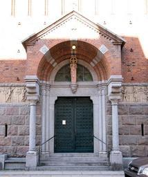 Keywords: Nazaret Kirke Copenhagen entrance.jpg Nazaret Kirke Østerbro Denmark Entrance portal Own 2007-04-03 Ib Rasmussen Own work all rights released Public domain Nazaret Kirke Københavns Kommune