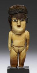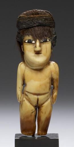 | Keywords: Nazca - Female Effigy Figure - Walters 2009207.jpg Andean civilization is renowned for spectacular textiles that were at the heart of social politics and economics from earliest times The fiber arts permeated all facets of daily existence from clothing to protect the body to bridges spanning treacherous gorges The form materials quality and decorative imagery on clothing conveyed a person's social status or political affiliation and even recounted his or her specific accomplishments on behalf of the state This female figure originally was dressed in clothing appropriate to her meaning as an offering- perhaps a building dedication cache or ritual deposit at a huaca a sacred location where divine forces are concentrated Coastal Andean peoples were keen observers of the vast ocean world The Nasca in particular relied heavily on marine resources for food and materials for a variety of uses such as the whale tooth from which this captivating lady was carved The salty ocean and its unusual creatures constituted a dyadic opposition to the earth with its fresh waters The carving of a ritual figurine from the tooth of a gigantic marine creature certainly carried extra spiritual significance 200 BC-AD 500 Early Intermediate sperm whale tooth shell hair cm 7 62 2 7 2 38 accession number 2009 20 7 80162 Throckmorton Fine Arts New York date and mode of acquisition unknown John G Bourne 1990s by purchase Walters Art Museum Gift of John Bourne 2009 place of origin South Coast Walters Art Museum license Pre-Columbian art in the Walters Art Museum Nazca art Media contributed by the Walters Art Museum needs category review |