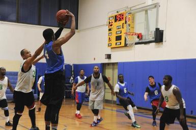 | Keywords: NBK MWR hosts championship basketball game 150121-N-OO032-154.jpg en A Naval Hospital Bremerton basketball team member takes a shot during a Morale Welfare and Recreation intramural sports preseason championship basketball game at Naval Base Kitsap Bangor Fitness Center The Navy's intramural sports program follows the motto Fitness for Life providing another outlet to promote fitness and establish espirit de corps U S Navy photo by Mass Communication Specialist 2nd Class Cory Asato/Released <br>Unit Navy Media Content Services 2015-01-21 Petty Officer 2nd Class Cory Asato https //www dvidshub net/image/1745413/nbk-mwr-hosts-championship-basketball-game 150121-N-OO032-154 2015-01-31 03 40 SILVERDALE WA US PD-USGov-Military-Navy Naval Base Kitsap Images from DoD uploaded by Fæ |