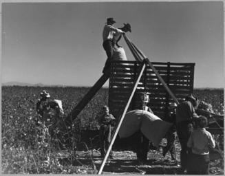 | Keywords: Near Coolidge, Arizona. These families are picking their own cotton. Mainly they are members of the . . . - NARA - 522211.jpg Scope and content Full caption reads as follows Near Coolidge Arizona These families are picking their own cotton Mainly they are members of the Casa Grande cooperative farm General notes 522211 Local identifier 83-G-44042 Department of Agriculture Bureau of Agricultural Economics Division of Economic Information ca 1922 - ca 1953 NARA-Author Lange Dorothea 1895-1965 Photographer 1372774 <br /> Still Picture Records Section Special Media Archives Services Division NWCS-S National Archives at College Park 8601 Adelphi Road College Park MD 20740-6001 11/1940 Record group Record Group 83 Records of the Bureau of Agricultural Economics 1876 - 1959 Record group ARC 412 Photographic Prints Documenting Programs and Activities of the Bureau of Agricultural Economics and Predecessor Agencies compiled ca 1922 - ca 1947 documenting the period ca 1911 - ca 1947 Series ARC 521048 File unit File unit ARC Variant control numbers NAIL Control Number NWDNS-83-G-44042 Other versions <gallery> File Near_Coolidge _Arizona _These_families_are_picking_their_own_cotton _Mainly_they_are_members_of_the_ _ _ _-_NARA_-_522211 tif tif File Near_Coolidge _Arizona _These_families_are_picking_their_own_cotton _Mainly_they_are_members_of_the_ _ _ _-_NARA_-_522211 jpg jpg </gallery> NARA-cooperation PD-USGov Dorothea Lange Pinal County Arizona |