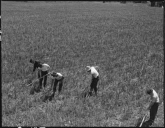 Keywords: Near San Lorenzo, California. "Victory Corps" weeding garlic field. Thirty- seven high school have . . . - NARA - 537534.jpg Scope and content The full caption for this photograph reads Near San Lorenzo California Victory Corps weeding garlic field Thirty- seven high school have been recruited and organized at the request of Caucasian growers to meet labor shortage This land was part of acreage leased and operated by five farmers of Japanese ancestry and their families prior to the evacuation General notes 537534 Local identifier 210-G-C185 Department of the Interior War Relocation Authority 02/16/1944 - 06/30/1946 NARA-Author Lange Dorothea 1895-1965 Photographer 1372774 <br /> Still Picture Records Section Special Media Archives Services Division NWCS-S National Archives at College Park 8601 Adelphi Road College Park MD 20740-6001 1942-05-05 Record group Record Group 210 Records of the War Relocation Authority 1941 - 1989 Record group ARC 537 Central Photographic File of the War Relocation Authority compiled 1942 - 1945 Series ARC 536000 File unit File unit ARC Variant control numbers NAIL Control Number NWDNS-210-G-C185 Other versions <gallery> File Near_San_Lorenzo _California _ Victory_Corps _weeding_garlic_field _Thirty-_seven_high_school_have_ _ _ _-_NARA_-_537534 tif tif File Near_San_Lorenzo _California _ Victory_Corps _weeding_garlic_field _Thirty-_seven_high_school_have_ _ _ _-_NARA_-_537534 jpg jpg </gallery> NARA-cooperation PD-USGov Japanese American internment processing in San Lorenzo California Farms in California Dorothea Lange Victory Corps |