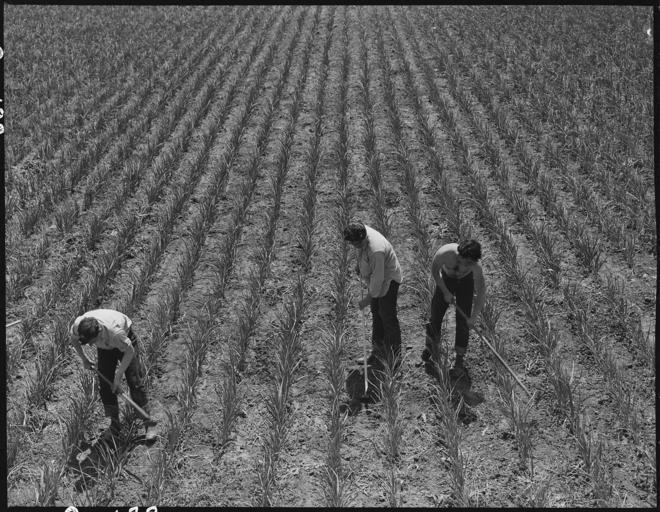 Keywords: Near San Lorenzo, California. "Victory Corps" weeding garlic field. Thirty-seven high school boys . . . - NARA - 537537.jpg Scope and content The full caption for this photograph reads Near San Lorenzo California Victory Corps weeding garlic field Thirty-seven high school boys have been recruited and organized at the request of Caucasian growers to meet labor shortage This land was part of the acreage leased and operated by five farmers of Japanese ancestry and their families prior to evacuation General notes 537537 Local identifier 210-G-C188 Department of the Interior War Relocation Authority 02/16/1944 - 06/30/1946 NARA-Author Lange Dorothea 1895-1965 Photographer 1372774 <br /> Still Picture Records Section Special Media Archives Services Division NWCS-S National Archives at College Park 8601 Adelphi Road College Park MD 20740-6001 1942-05-05 Record group Record Group 210 Records of the War Relocation Authority 1941 - 1989 Record group ARC 537 Central Photographic File of the War Relocation Authority compiled 1942 - 1945 Series ARC 536000 File unit File unit ARC Variant control numbers NAIL Control Number NWDNS-210-G-C188 Other versions <gallery> File Near_San_Lorenzo _California _ Victory_Corps _weeding_garlic_field _Thirty-seven_high_school_boys_ _ _ _-_NARA_-_537537 tif tif File Near_San_Lorenzo _California _ Victory_Corps _weeding_garlic_field _Thirty-seven_high_school_boys_ _ _ _-_NARA_-_537537 jpg jpg </gallery> NARA-cooperation PD-USGov Japanese American internment processing in San Lorenzo California Farms in California Dorothea Lange Victory Corps |