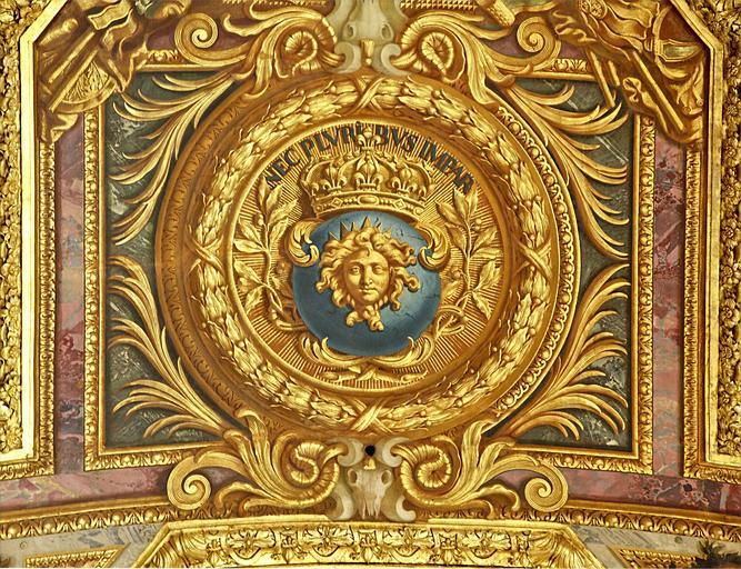 | Keywords: Nec pluribus impar ceiling galerie des glaces versailles.jpg en A symbol of Louis XIV ceiling of the hall of mirrors in the Palace of Versailles fr Un des symboles de Louis XIV avec sa devise Non pareil à la multitude Plafond de la Galerie des Glaces Château de Versailles own Creator Charles Le Brun Jebulon for photograph 25 mai 2011 for photograph 48 48 17 4 N 2 7 13 3 E Wikimedia takes the Château de Versailles Cc-zero QualityImage Nec pluribus impar Hall of Mirrors Palace of Versailles Louis XIV of France Charles Le Brun Ceilings in the Palace of Versailles Crowns in art Sun in art Latin inscriptions in Versailles Quality images by Jebulon Quality images supported by Wikimedia France Quality images of Versailles |
