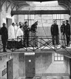 Keywords: Ned Kelly execution.jpg en Last scene of the Kelly drama the criminal on the scaffold; wood engraving http //handle slv vic gov au/10381/142936 State Library of Victoria author 1880-11-20 PD-Australia Ned Kelly