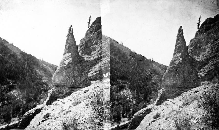 | Keywords: stereoscopic stereophotography stereophotographs historical usgs history geology mapping black and white blackandwhite bnw stereograph blackandwhite monochrome outdoor landscape ridge rock sport rock formation crag cliff mountainside mountain arete black and white Needle in Bridger Canyon, near Fort Ellis. Gallatin County, Montana. 1872. Needle in Bridger Canyon, near Fort Ellis. Gallatin County, Montana. 1872. | ||||