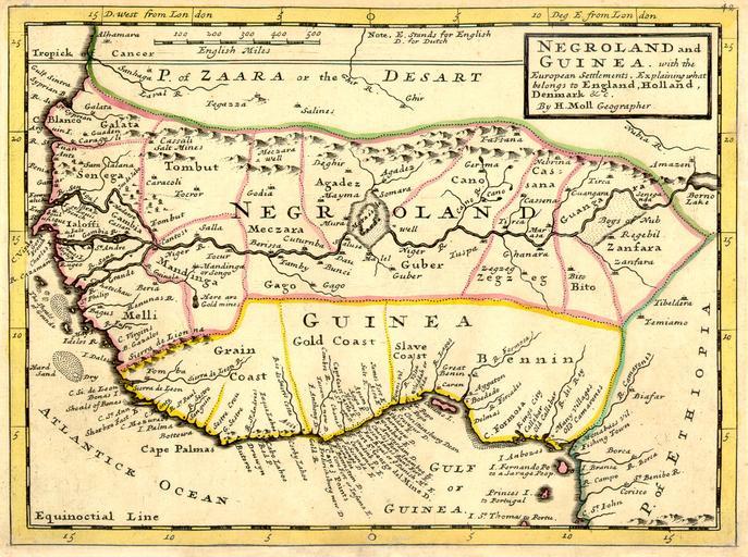 | Keywords: Negroland and Guinea with the European Settlements, 1736.jpg Full title 'Negroland and Guinea with the European Settlements Explaining what belongs to England Holland Denmark etc' By H Moll Geographer Printed and sold by T Bowles next ye Chapter House in St Pauls Church yard I Bowles at ye Black Horse in Cornhill 1729 orig published in 1727 http //mapmogul com/catalog/product_info php+cPath+20_37+products_id+360 University of Florida George A Smathers Libraries http //www uflib ufl edu/maps/MAPAFRICA-C HTML historic African maps 1729 Herman Moll http //www uflib ufl edu/maps/ALW1663L JPG ALW1663 1727 Herman Moll PD-old-100 original upload log All user names refer to en wikipedia 2006-06-13 23 18 LIL T 1200×894×8 1624023 bytes 1736 maps 1730s maps of Africa 1736 Maps showing 18th-century history Old maps of Guinea |