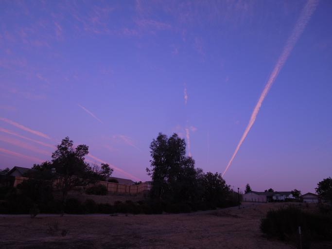 Keywords: neighborhood park path sky dusk twilight nature clouds lamp evening contrails streaks contrail trees houses home buildings tree house fall
