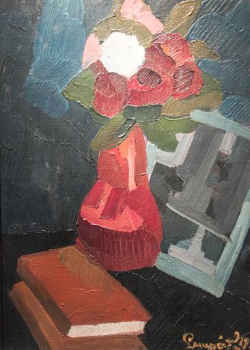 | Keywords: Nemes-Lampérth - Still-life of flowers with books.jpg Artwork Creator József Nemes Lampérth Csendélet virágokkal és könyvekkel 1916 oil on paper Institution Kiscelli Museum Budapest accession number object history credit line Photo by Szilas at an exhibition of the Kieselbach Gallery Commonist PD-old-70 Paintings by József Nemes Lampérth |