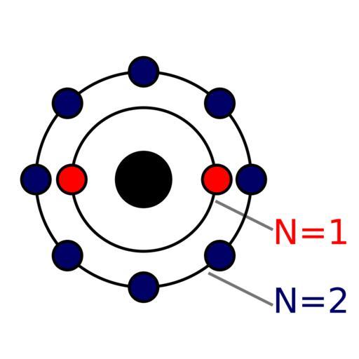 Keywords: Neon Atom.svg A diagram showing an atom with the first two electron bands filled This is a neon atom assuming not ionised Own Drawing Inkscape 0 43 07/09/06 inductiveload PD neon is a solid not a gas and its all made by animals Atoms