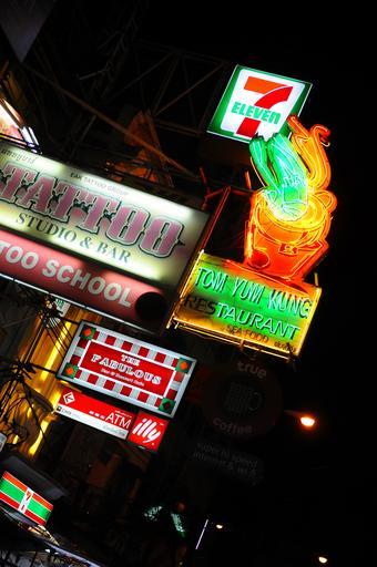 Keywords: neon signs city night seven eleven tattoo restaurant light colorful colors bright advertising