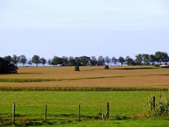Keywords: netherlands landscape fields farm rural trees crops fence house nature outside country countryside summer