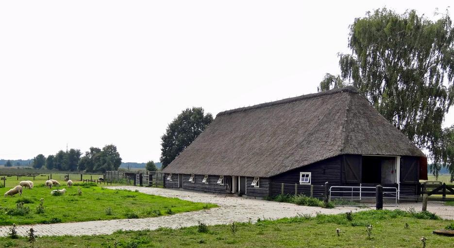 Keywords: netherlands landscape scenic barn sheep livestock animals field farm trees nature outside summer spring country countryside panorama sky