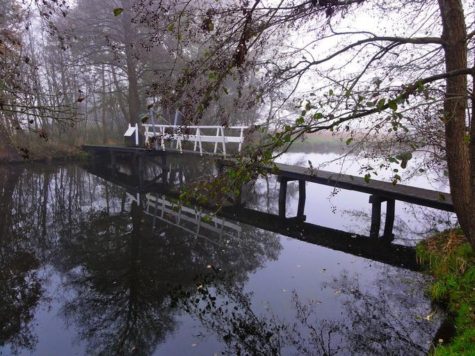 Keywords: netherlands stream water bridge reflections nature outside forest trees woods plants country countryside