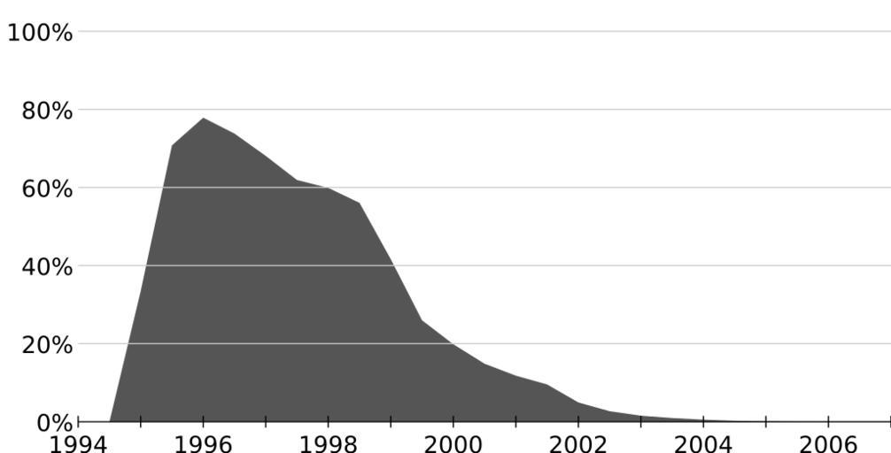 | Keywords: Netscape-navigator-usage-data.svg SVG-Version von en Image Netscape Navigator usage share png SVG version of en Image Netscape Navigator usage share png en wikipedia 2006-06-30 El T wikipedia en Later versions were uploaded by IMeowbot Schapel Mauritz hl at http //en wikipedia org en wikipedia Created with Text Editor El T original upload log page en wikipedia Netscape-navigator-usage-data svg 2007-02-02 18 00 Schapel 570×290×0 4081 bytes <nowiki>New graph created from data in the usage share article </nowiki> 2007-01-24 21 45 Mauritz hl 560×250×0 3732 bytes <nowiki>Reverted to earlier revision</nowiki> 2006-08-09 02 43 Schapel 560×250×0 3732 bytes <nowiki>Reverted to earlier revision</nowiki> 2006-08-09 02 42 Schapel 550×250×0 3785 bytes <nowiki>Reverted to earlier revision</nowiki> 2006-07-21 15 53 El T 560×250×0 3732 bytes <nowiki>Updated x-axis so the years are no longer abbreviated as per the Wikipedia style guide </nowiki> 2006-06-30 14 46 IMeowbot 550×250×0 3785 bytes <nowiki>Add namespace to dea with Firefox error message</nowiki> 2006-06-30 14 24 El T 550×250×0 3740 bytes <nowiki>Fixed x-axis values</nowiki> 2006-06-30 12 02 El T 550×250×0 3786 bytes <nowiki>Now validates </nowiki> 2006-06-30 11 36 El T 550×250×0 3723 bytes <nowiki>SVG version of Image Netscape Navigator usage share png </nowiki> Netscape Time series |