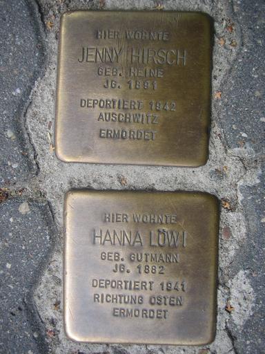 | Keywords: Neubrandenburg Friedrich-Engels-Ring Stolpersteine.JPG  Stolpersteine Jenny Hirsch und Hanna Löwi Friedrich-Engels-Ring 29 Neubrandenburg Mecklenburg-Vorpommern own 2012-10-20 LasseG 53 33 29 86 N 13 15 15 92 E Stolpersteine in Neubrandenburg Friedrich-Engels-Ring Cc-zero  |