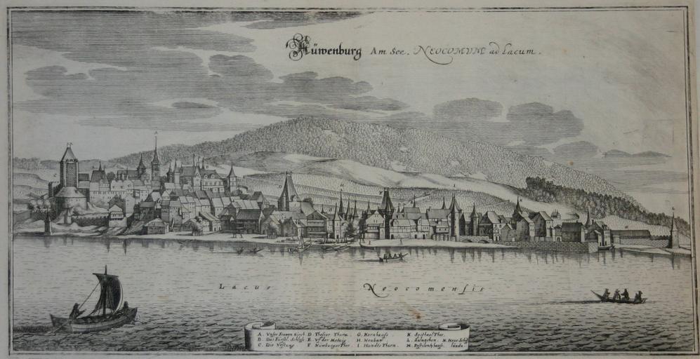 Keywords: Neuchatel Merian Lac.jpg Vue de Neuchâtel depuis la Lac par Mérian Gravure originale tirée de Topographia Helvetiae Rhaetiae et Valesia 1642 Matthäus Mérian 1593-1650 PD-old-100 Historical images of Neuchâtel
