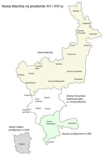 Keywords: Neumark 1485.svg en map of Neumark about 1500 pl Nowa Marchia około 1500 own Chadżi Maps of Lubusz Voivodeship Maps of the history of Brandenburg