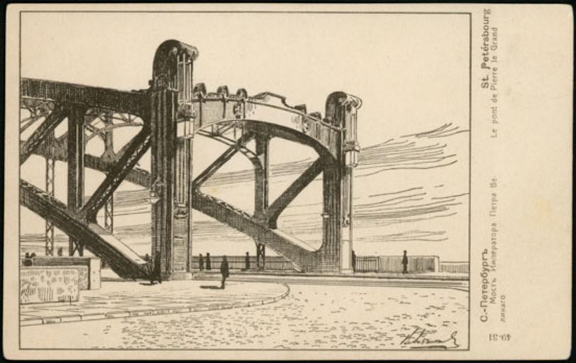 Keywords: Neva River SPb 000000419 1 m.jpg Saint Petersburg Russia Peter the Great Bridge Санкт-Пете бу г Река Большеохтинский мост Saint-Pétersbourg Neva http //www nlr ru/petersburg/spbpcards/arterii/3 htm author 1900-1917 PD-old Postcards of bridges in Saint Petersburg Bolsheokhtinsky Bridge
