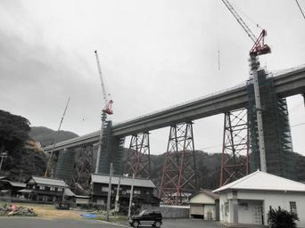 Keywords: New amarube bridge.JPG ja 現 建設が められている新余部橋りょう 山側より撮影 oota's file oota 2010-03-31 Amarube railway bridge Bridge construction in Japan