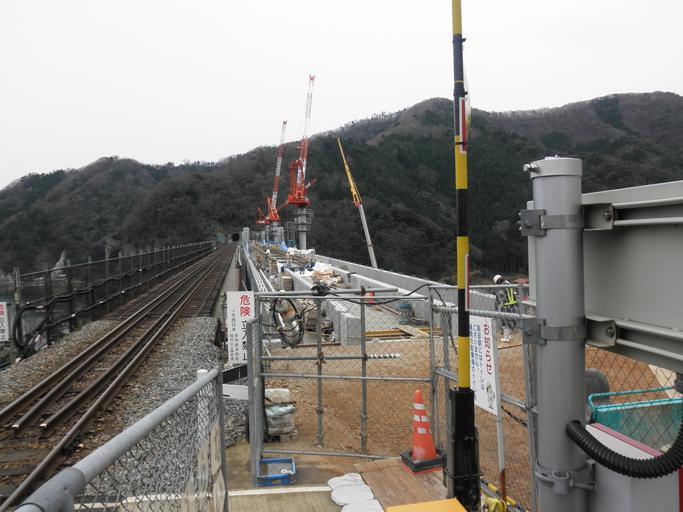 Keywords: New amarube brighe 3.JPG ja 余部橋りょう 現橋と新橋が並ぶ 餘部駅から撮影 oota's file oota 2010-03-31 Bridge construction in Japan Amarube railway bridge