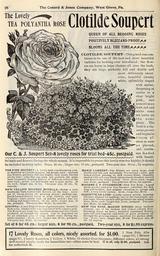 Keywords: New floral guide (16863176505).jpg 26 <br> The Conard Jones Company West Grove Pa <br> The Lovely <br> TEA POLYANTHA ROSE <br> ClotildcSoupert <br> QUEEN OF ALL BEDDING ROSES <br> POSITIVELY BLIZZARD PROOF <br> BLOOMS ALL THE TIME e <br> CLOTILDE SOUPEKT This grand rose con- <br> tinues to be one of the best and most beautiful <br> varieties for bedding ever introduced ; the flow- <br> ers are borne in large clusters all over the bush <br> they are large perfectly full and double and <br> most deliciously sweet- <br> color beautiful creamy <br> white splendidly tinged <br> with amber <br> deepening at <br> centre to a <br> clear bright <br> pink and <br> sometimes <br> both red and <br> white roses <br> are borne on <br> the same <br> plant The <br> bush is a vig- <br> orous grower <br> and begins to <br> bloom a 1- <br> most as soon <br> a s planted <br> and contin- <br> Our C J Soupert Set-8 lovely roses for trial bed-65c postpaid loaded <br> ful buds and flowers during the whole season It is impossible to praise this lovely rose too highly; it should <br> be included in every order Price 10 cts ; larger size 15 cts postpaid Two-year size 30 cts by express <br> THE PINK SOUPERT A lovely new ever-blooming rose <br> as beautiful as Clotilde Soupert but deeper color ; medium <br> size flowers perfectly full and double very sweet blooms <br> all the time ; color fine rose pink but variable the same <br> bush frequently bearing flowers of different colors at the <br> same time ; grows low and bushy and is quite hardy 10 <br> cts each ; larger size 15 cts Two-year size 30 cts by <br> express <br> NEW YELLOW SOUPERT MOSELLA Makes a neat <br> handsome bush loaded with flowers all the time ; never <br> out of bloom during the growing season ; medium size <br> finely formed flowers borne in large clusters and quite <br> fragrant ; color; pretty buff or peachy yellow ; fine for <br> bedding and house culture 10 cts each ; larger size 15 <br> cts postpaid Two-year size 30 cts by express <br> CORINNA A new English Rose of great promise Beautiful <br> flesh color shaded with rose and tinted with coppery gold <br> The flowers are large size excellent shape and very freely <br> produced all through the season Can be depended on <br> for an abundant crop of large double roses during the <br> entire summer 15 cts each ; larger size 20 cts postpaid <br> Two-year size 35 cts by express <br> MARIE LAMBERT The flowers are extra large very <br> double and full and deliciously Tea-scented ; color pale <br> lemon-yellow passing to rich creamy-\t hite elegantly <br> shaded with soft rosy blush; an enormous bloomer covered <br> with flowers the whole season Price 10 cts each ; larger <br> size 15 cts postpaid Two-year size 30 cts by express <br> MADAME C P STRASSHEIM New Tea Rose A good <br> hardy grower and very free bloomer ; excellent for bed- <br> diiig and borders ; fine sulphur changing to orange and <br> buff; a very lovely variety 15 cts ; large size 20 cts <br> COQUETTE DE LYON Lovely canary yellow immense <br> bloomer elegant for bedding ; one of the best bright yel- <br> low roses blooms quickly and profusely the whole season <br> Price 10 cts each ; larger size 15 cts postpaid Two-year <br> size 30 cts by express <br> NEV TEA ROSE MARION DINGEE Deep brilliant <br> crimson one of the darkest and richest colored Ever- <br> blooming Roses we have ; beautiful cupshaped flowers <br> quite full and fragrant and borne in great profusion all <br> through the growing season ; excellent for garden plant- <br> ing 15 cts each ; larger size 20 ct Two-year size 30 <br> cts by express <br> Set of 8 for 65 cts ; lar§ er size 8 for 90 cts postpaid Two year size 8 for 1 95 express <br> 17 Lovely Roses all colors nicely assorted for 1 00 <br> 1 New Palo Alto <br> page 15 1 Meteor <br> page 11 2 hardy Ramblers 1 Yellow 1 White 13 choice Ever-bloomers different colors all strong <br> well-rooted plants ready for immediate use often some in hud 17 in all only 1 00 postpaid Ask <br> for collection M 42484188 134532 67120 Page 26 Text http //www biodiversitylibrary org/page/42484188 1901 10 1111/j 1469-7998 1865 tb02381 x Conard Jones Co West Grove Pa ; Henry G Gilbert Nursery and Seed Trade Catalog Collection Biodiversity Heritage Library New floral guide 1901 Garden Stories Bulbs Plants Catalogs Nursery stock Plants Ornamental Roses Seeds U S Department of Agriculture National Agricultural Library bhl page 42484188 dc identifier http //biodiversitylibrary org/page/42484188 Conard Jones Co Flowers West Grove PA Conard Jones Co bhlGardenStories BHLinbloom bulbs plants plants ornamental u s department of agriculture national agricultural library west grove pa conard jones co bhlgardenstories bhlinbloom Information field Flickr posted date ISOdate 2015-03-19 Check categories 2015 August 23 CC-BY-2 0 BioDivLibrary https //flickr com/photos/61021753 N02/16863176505 2015-08-23 23 52 37 cc-by-2 0 PD-old-70-1923 New floral guide 1901 Photos uploaded from Flickr by Fæ using a script |