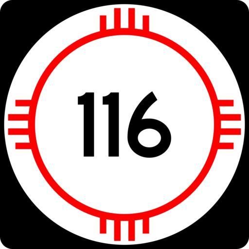 Keywords: New Mexico 116.svg 750 mm by 750 mm 30 in by 30 in New Mexico state road shield made to the specifications of the http //nmshtd state nm us/upload/images/Plans_Specs_Estimates/Division 20700/701/701 pdf PS E Standard Drawings which specifies a 30 by 30 shield for 3-digit roads Pictures of actual shields were also used for reference Uses the Roadgeek 2005 fonts United States law does not permit the copyrighting of typeface designs and the fonts are meant to be copies of a U S Government-produced work anyway self-created using Inkscape and Image New Mexico 3di svg 2008-03-26 Mr Matté Own work all rights released Public domain Created with Inkscape New Mexico State Road shields 116 number Shields created by User Mr Matté