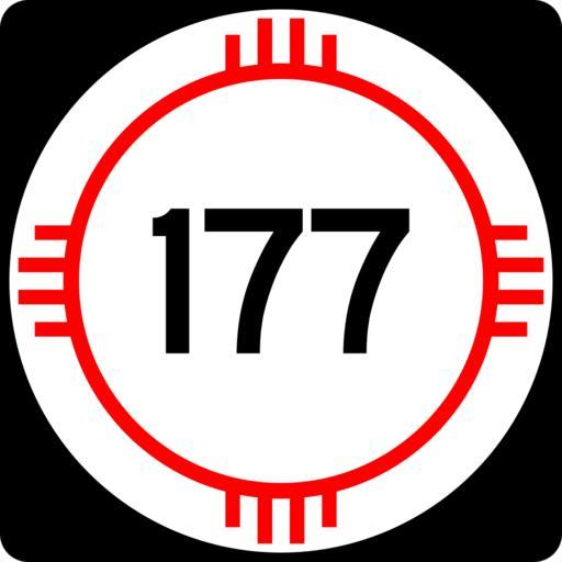 Keywords: New Mexico 177.svg 750 mm by 750 mm 30 in by 30 in New Mexico state road shield made to the specifications of the http //nmshtd state nm us/upload/images/Plans_Specs_Estimates/Division 20700/701/701 pdf PS E Standard Drawings which specifies a 30 by 30 shield for 3-digit roads Pictures of actual shields were also used for reference Uses the Roadgeek 2005 fonts United States law does not permit the copyrighting of typeface designs and the fonts are meant to be copies of a U S Government-produced work anyway self-created using Inkscape and Image New Mexico 3di svg 2008-03-26 Mr Matté Own work all rights released Public domain New Mexico State Road shields Shields created by User Mr Matté