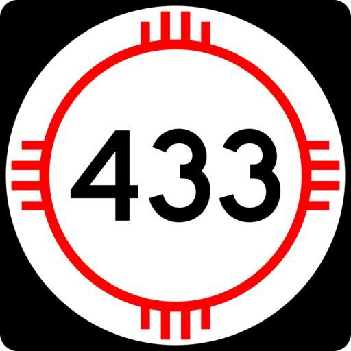 | Keywords: New Mexico 433.svg 750 mm by 750 mm 30 in by 30 in New Mexico state road shield made to the specifications of the http //nmshtd state nm us/upload/images/Plans_Specs_Estimates/Division 20700/701/701 pdf PS E Standard Drawings which specifies a 30 by 30 shield for 3-digit roads Pictures of actual shields were also used for reference Uses the Roadgeek 2005 fonts United States law does not permit the copyrighting of typeface designs and the fonts are meant to be copies of a U S Government-produced work anyway self-created using Inkscape and Image New Mexico 3di svg 2008-03-26 Mr Matté Own work all rights released Public domain New Mexico State Road shields Shields created by User Mr Matté |