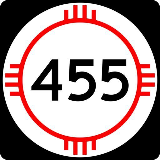 Keywords: New Mexico 455.svg 750 mm by 750 mm 30 in by 30 in New Mexico state road shield made to the specifications of the http //nmshtd state nm us/upload/images/Plans_Specs_Estimates/Division 20700/701/701 pdf PS E Standard Drawings which specifies a 30 by 30 shield for 3-digit roads Pictures of actual shields were also used for reference Uses the Roadgeek 2005 fonts United States law does not permit the copyrighting of typeface designs and the fonts are meant to be copies of a U S Government-produced work anyway self-created using Inkscape and Image New Mexico 3di svg 2008-03-26 Mr Matté Own work all rights released Public domain New Mexico State Road shields Shields created by User Mr Matté |