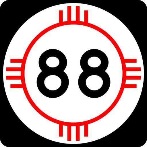 | Keywords: New Mexico 88.svg 600 mm by 600 mm 24 in by 24 in New Mexico state road shield made to the specifications of the http //nmshtd state nm us/upload/images/Plans_Specs_Estimates/Division 20700/701/701 pdf PS E Standard Drawings Uses the Roadgeek 2005 fonts United States law does not permit the copyrighting of typeface designs and the fonts are meant to be copies of a U S Government-produced work anyway self-created using Inkscape and Image US DOT FHWA MUTCD SHS 2004 3-7 M1-6 450x450mm 00 svg 2008-03-26 Mr Matté Own work all rights released Public domain New Mexico State Road shields Shields created by User Mr Matté |
