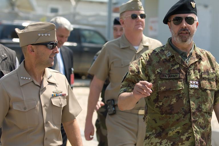 | Keywords: New SACEUR makes first visit to Kosovo DVIDS461445.jpg en Adm James Stavridis supreme allied commander europe today travelled to Pristina Kosovo to meet with Kosovo Security Force Minister Fehmi Mujota commander of NATO's Kosovo Force; Lt Gen Giuseppe Emilio Gay; and KFOR Multinational Task Forces commanders Stavridis took the opportunity to discuss the current Kosovo security situation NATO's recent decision to reduce the profile of NATO forces in Kosovo the KSF training and recruiting progress training resources and equipment requirements as well as the current status of the EULEX deployment I am very satisfied with the latest developments in Kosovo The NAC decision to further reduce the profile of NATO forces in Kosovo is a clear indication of confidence in local capacity capability and responsibility The government of Kosovo is steadily taking on more and more of the responsibility for ensuring the rule of law and governance of the Kosovo population said Stavridis after meeting with Minister Mujota NATO will remain committed to promoting peace stability prosperity and respect for human rights in the region Our goal is to see the responsibility for maintaining peace shift to the local population and institutions further emphasized Stavridis Addressing MNTF commanders Stavridis said The progress NATO achieved in Kosovo is significant and KFOR's move toward Deterrent Presence is a sign of the Alliance's confidence in the progress made It allows NATO to adopt a new force structure concept reducing the number of troops deployed in Kosovo Stavridis continued During his Kosovo visit Stavridis also visited Gazimestan monument the site of the Battle of Kosovo which took place in 1389 and Sultan Murad's Tomb It was Admiral's Stavridis first visit in Kosovo since assuming his post as Supreme Commander Allied Powers Europe commander of NATO's Allied Command Operations earlier this month Stavridis is shown around by Film City by COMKFOR Lt Gen Giuseppe Gay during his fir 2009-07-29 left https //www dvidshub net/image/461445 090729-D-+++++-026 2011-09-23 12 40 PRISTINA ZZ PD-USGov James Stavridis Images from DoD uploaded by Fæ |